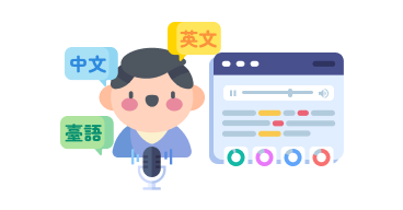 提供中文/英文/臺語口說練習,老師可將文本轉為口說範例音檔,AI評定結果標示出學生發音不正確及遺漏處,並自動給予評分、評語。